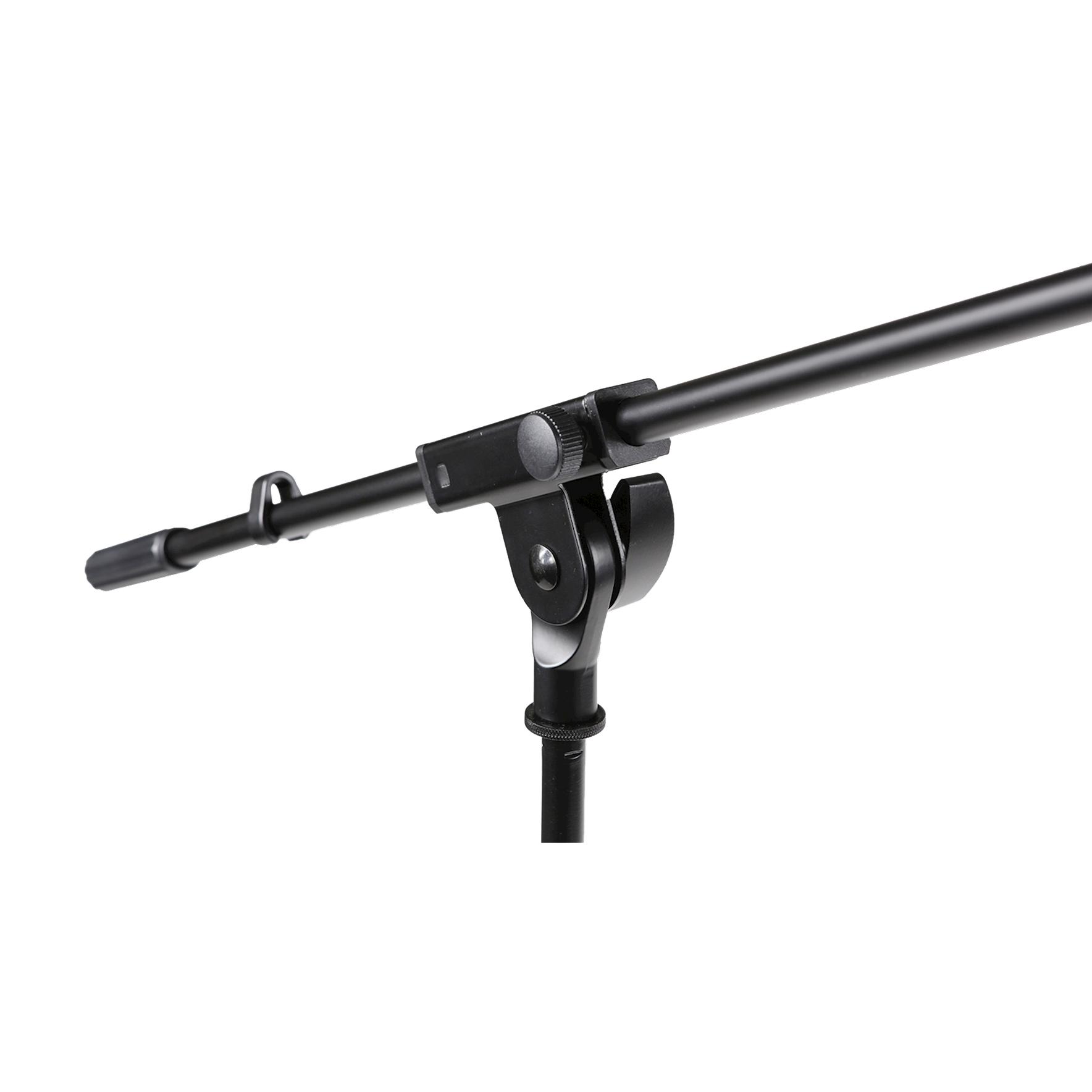 Microphone stand with foldable legs and boom arm Black version
