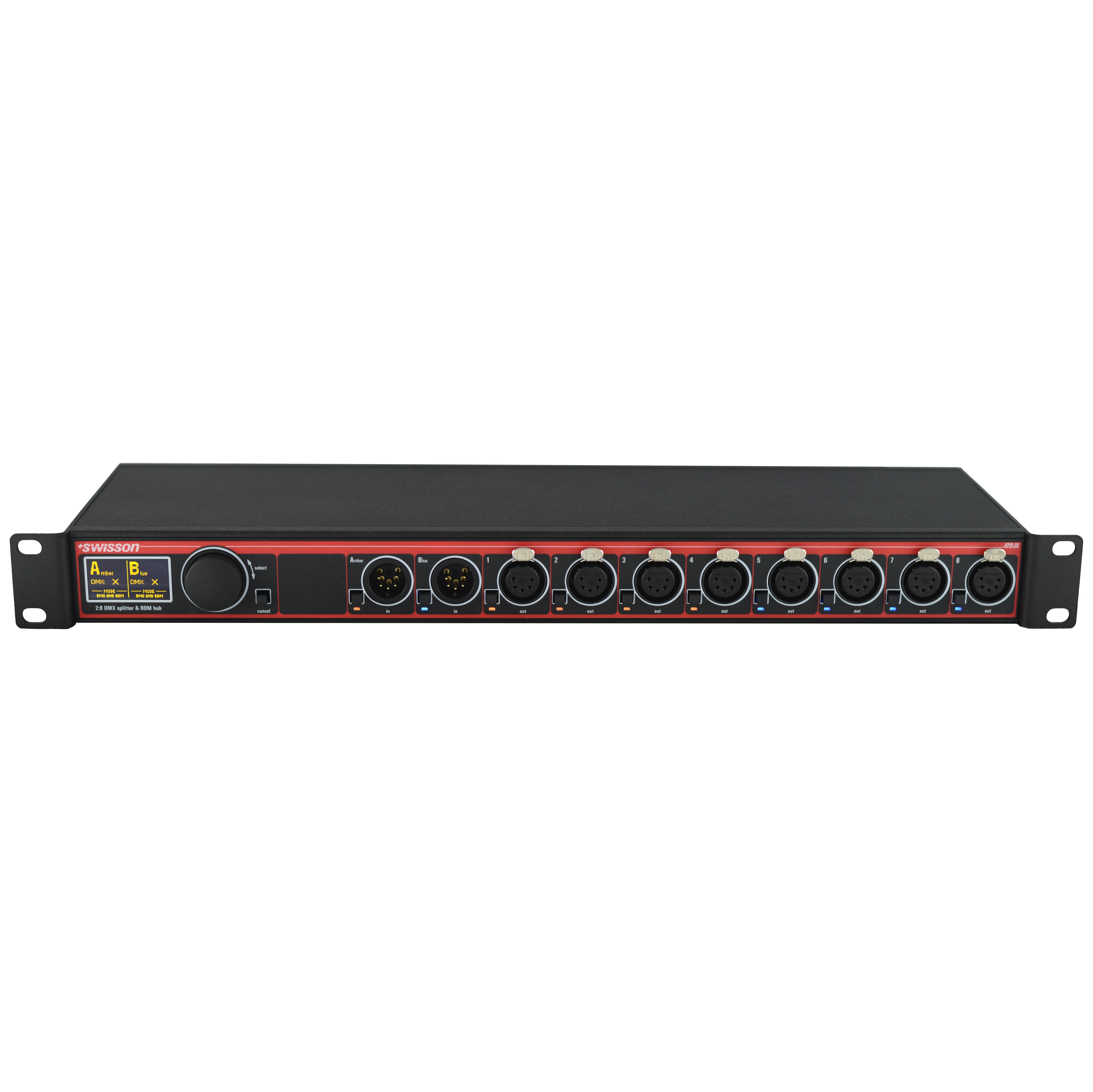 XPD-28-5R 2:8 A/B DMX&RDM Splitter, 19″, 2 inputs, 8 outputs, 5pin XLR